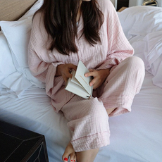 纯棉纱布睡衣女春夏新款长袖套装韩版空调服宽松简约家居服两件套
