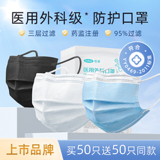 可孚口罩医用外科一次性医疗正品级白色罩医护防护用三层黑色加厚