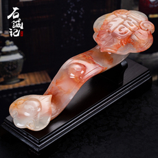 天然贵州翠玉石如意摆件居家客厅办公室电视柜送礼乔迁玄关装饰品