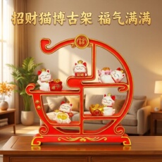 喜旺招财猫开业乔迁礼品古风博古架乔迁开业家居客厅玄关装饰摆件