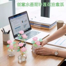创意水晶荷叶莲花办公室工位治愈系摆件好运连连桌面装饰生日礼物