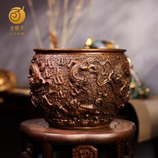 6#带盖海水瑞兽方炉黄铜居家玄关办公室书房摆件礼品铜工艺品