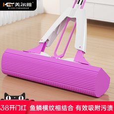 美丽雅不锈钢杆免手洗海绵吸水拖把头卫生间家用对折挤水胶棉拖布