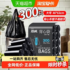 利得大垃圾袋背心手提式家用厨房黑色中号50*60cm*300只双面1.2丝