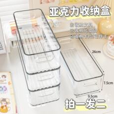 桌面宿舍收纳盒长条窄长型长方形亚克力透明杂物小物件抽屉分隔盒