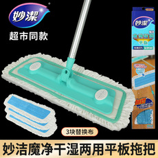 妙洁木地板专用平板拖把家用旋转干湿两用魔净一拖净平板拖把拖布