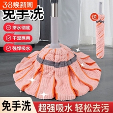 通用拖把杆旋转免手洗懒人拖布家用拖把头替换墩布杆