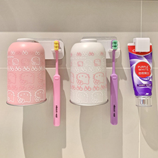 日式可爱磁吸漱口杯牙刷置物架壁挂刷牙杯倒挂电动牙刷挂架免打孔