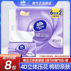 维达抽纸棉韧立体美抽纸巾100抽8包/提家用卫生纸巾餐巾纸面巾纸