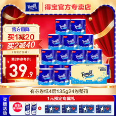 【下拉享优惠】得宝卷纸有芯无香厕纸卷筒纸整箱135克*24卷