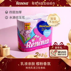 Renova樱花粉色手纸玫瑰香味 彩色有芯卷纸卫生间卷筒纸4卷卫生纸