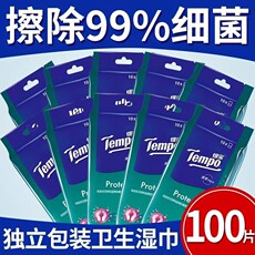 tempo得宝湿巾清洁消毒100片单片学生便携装德宝清洁湿纸巾卫生