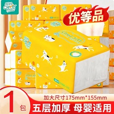 山丘全新布感加厚5层抽取式餐巾纸家用软包面巾纸竹浆本色抽纸