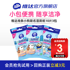 【U先派样】维达线条小狗联名便携装小包迷你湿厕纸卫生10片3包