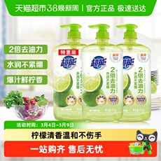 超能洗洁精爆汁鲜柠1kg*3胶原护手厨房按压不伤手家用实惠食品用