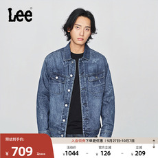 Lee25秋冬新品舒适版翻领数码印花激光复古深蓝色男牛仔夹克外套