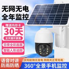 太阳能监控器摄像360度无死角手机远程家用户室外无线免插电超高清夜视无需wifi网络800万全景摄影头无电无网