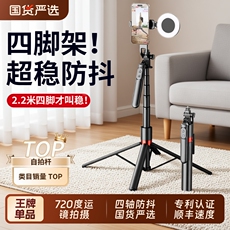 2025新款自拍杆落地三脚架防抖手机拍照通用直播支架自拍神器360度旋转手持四脚架户外旅游便携拍摄架