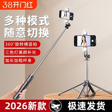 自拍杆可伸缩加长送蓝牙功能全自动新款补光灯拍视频旅游拍照直播三脚架手机支架