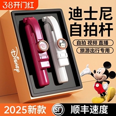 迪士尼官方正品自拍杆2025新款手机通用旅游便携落地三脚架防抖手持自拍神器360度旋转vlog拍摄直播专用支架