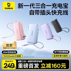 【充电宝3c认证可上飞机】倍思2025新款大容量自带线快充移动电源