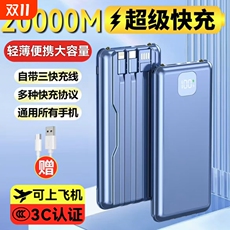 【新国标3c认证可上飞机】充电宝45W快充2025新款大容量20000毫安自带双线超薄移动电源mah2025新款小巧便携
