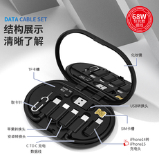 多功能数据盒数据线转换头智能转接头套装收纳68W快充手机sim卡收纳盒装充电线短线便携转换器拔卡针十五合一