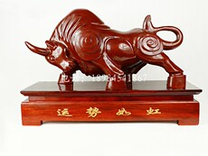 运如12生肖动物牛RPA摆件尔华势街股市抬头牛木雕工艺礼虹品