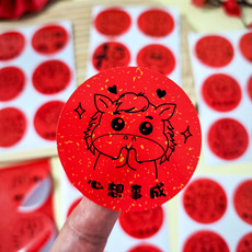 2026马年贴纸喜庆红色新年励志祝福圆形小马不干胶标签开学仪式感送幼儿园小学生儿童烘焙雪饼礼物装饰封口贴