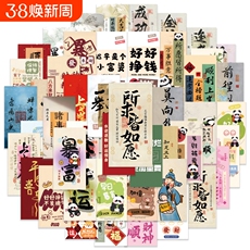 新中式平安喜乐古风贴纸文字祝福语万事皆生意国风书法手机壳励志