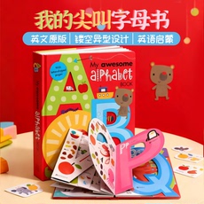 进口正版 My Awesome Alphabet Book 英文原版绘本 幼儿童26个字母单词启蒙镂空异形纸板书3D立体字母认知英语启蒙书数字书同款