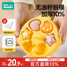 如山宝宝辅食蒸糕模具婴儿食品级硅胶盒猫爪蛋糕烘焙工耐高温磨具