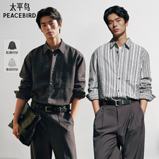 太平鸟男装 休闲衬衫男时尚舒适晕染肌理衬衫长袖条纹外穿式衬衫