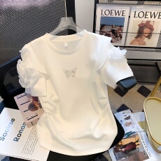 2025夏季新款纯棉短袖T恤女蝴蝶烫钻钉珠设计感时尚休闲百搭上衣