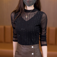 春季新款洋气烫钻打底衫时尚百搭气质内搭显瘦长袖上衣女t恤小衫