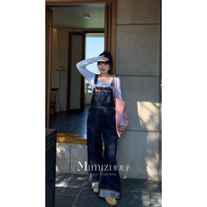 米米子微胖大码胖mm 休闲别致清新时尚纽扣高腰直筒牛仔背带裤春