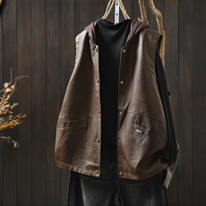 连帽皮马甲2026新款今年流行爆款女士春季宽松外穿时尚气质PU上衣