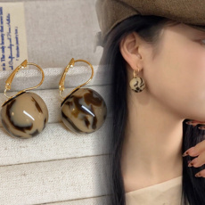 时尚复古豹纹球球耳扣小众冷淡风气质高级感耳环女潮2024初秋新款