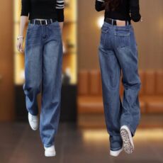 王家有鱼小个子白色阔腿裤女2025年春秋新款时尚百搭直筒牛仔裤