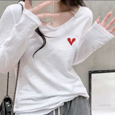 百搭纯棉长袖t恤女士春秋新款宽松显瘦大码洋气时尚不规则打底衫