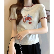 莫代尔圆领印花宽松短袖T恤女夏休闲薄款上衣时尚大码休闲打底衫