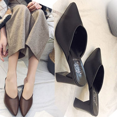 包头半拖鞋女夏中跟外穿中式国风刺绣女鞋懒人穆勒鞋粗跟时尚凉拖
