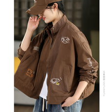 园园美衣复古100%棉刺绣短外套双层时尚拉链夹克开衫外搭上衣春