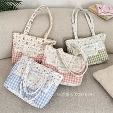 小白兔几 可爱蕾丝格子拼接帆布包女2025新款时尚休闲通勤托特包