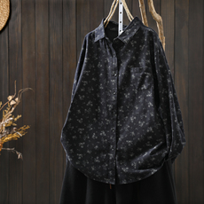 碎花衬衫女款2026新款春装黑色纯棉印花胖mm时尚宽松显瘦文艺衬衣