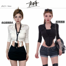 夏季男士潮牌立体提花小香风燕尾衬衫时尚百搭情侣款休闲长袖上衣