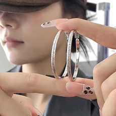 s925银针耳饰银色满天星圈圈耳环时尚简约气质百搭方圆脸显瘦耳圈