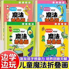 魔法折叠画彩色临摹本益智涂鸦培养孩子动手绘画能力海洋生物恐龙世界蔬菜瓜果可爱动物全4册全脑开发艺术思维创意启蒙训练绘画本