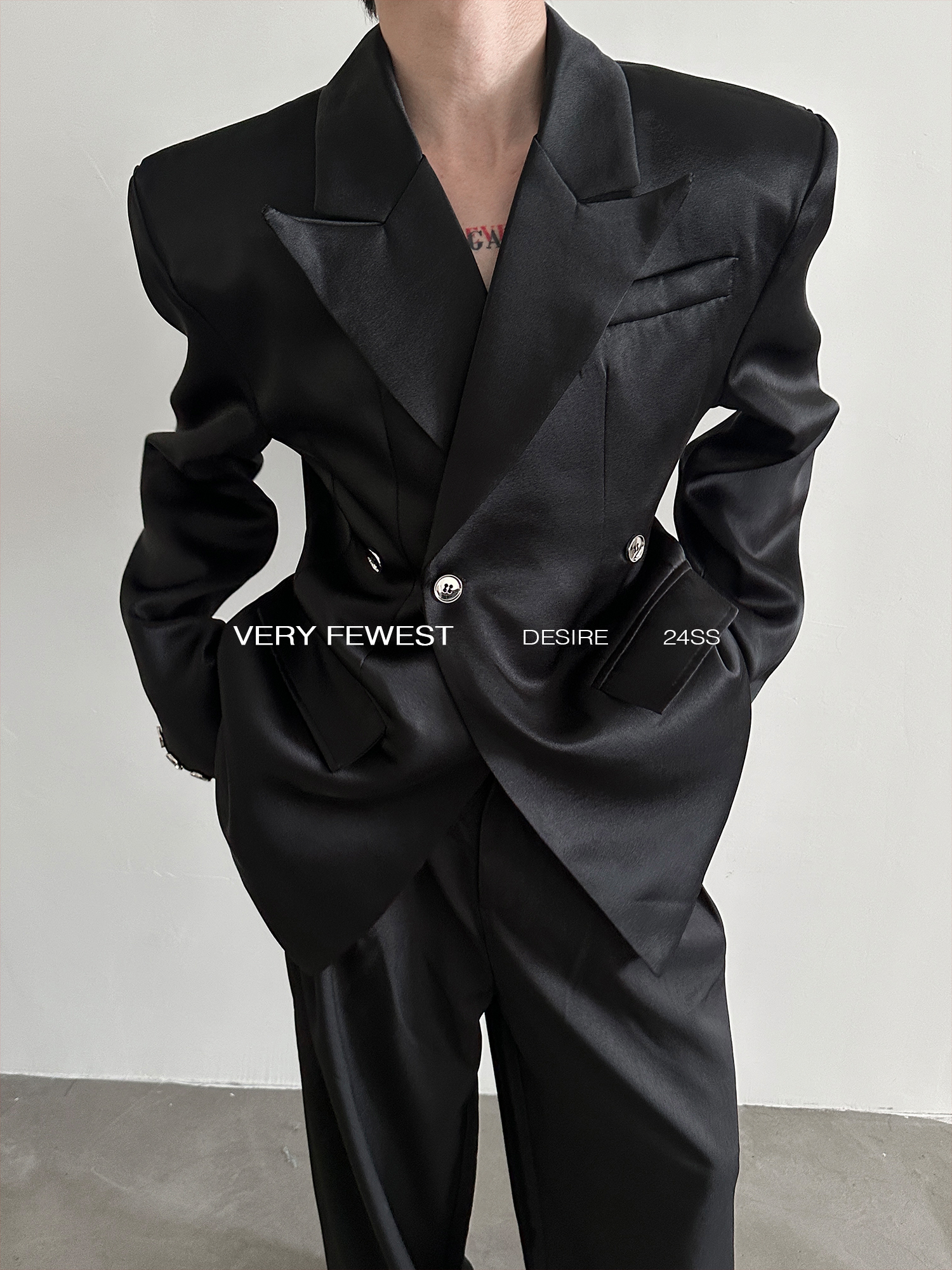 VERY FEWEST 时髦缎面收腰西装外套秋季高级感立体廓形垫肩西服