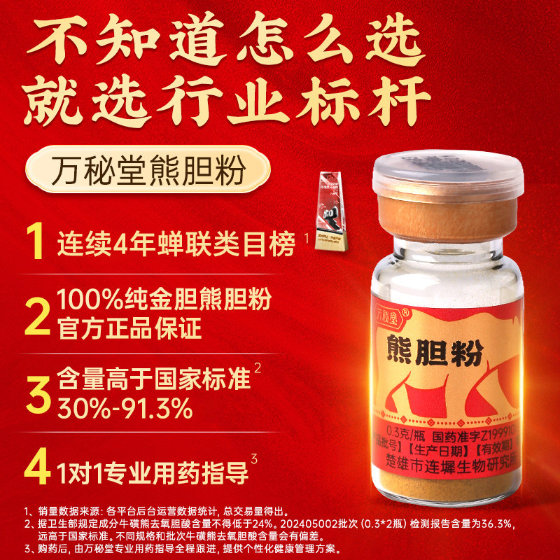 万秘堂金胆熊胆粉官方旗舰店0.3g平肝养肝护肝口苦口臭OTC中成药
